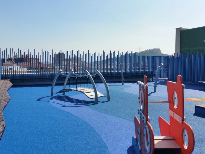 Desde el exterior, el parque tiene la apariencia de un submarino amarillo mientras que su interior está decorado con temática marina en tonos azules, asemejándose a las olas del mar. En lugar de disponer de un parque con juegos clásicos, se ha creado un espacio lúdico de disfrute y desconexión.